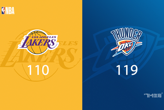 比赛开始,双方上来进入状态都比较慢热,打了近半节才得分上双,以赛亚·乔上来连中3记三分,但里夫斯也能带队回应,首节双方不相上下,次节双方继续拉锯战,哈滕连送妙传,卡鲁索和乔接连三分一波14-0拉开比分,湖人继续内线追分,但雷霆半场还领先9分。下半场,八村塁和斯玛特、拉拉维亚连续三分追分,随后拉拉维亚和詹姆斯接连杀内线,湖人15-1攻击波一度反超,杰林威连砍8分止血,三节雷霆还领先2分,末节双方展开胶着拉锯战,湖人连续挑战成功,但杰林威三分领先到9分,八村塁里突外投再追到差3分,詹姆斯三分不中,杰伦威两罚领先7分,最终湖人110-119不敌雷霆。