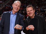 火箭官方发布火箭老板与太空人老板现场合影照片